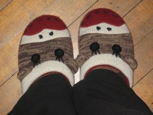 aww those slippers are so cute!!>i love knitting, its making such a big come back!