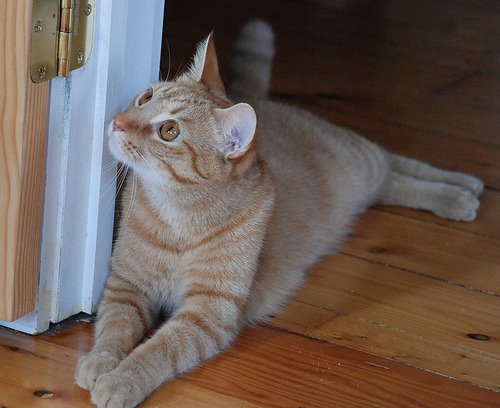 whomever wanted to play, and plopping himself in various doorways so that he could keep an eye on all the action. We had a few offers of people wanting to trade us our playful/aggressive/crazy cat for their mellow cat… it was tempting, but we kept him. (This photo of Calvin is by Patrick, and it’s not from the other night, but you get the idea).