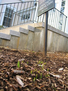 Last night, walking up the steps into the elementary school, I spotted four green bursts poking through the ground next to the building. Nature’s first green, right there, standing proud. I called to the 13-year-old girls walking in with me to come look. They dropped their aloof coolness for a moment to squeal with me: Spring!