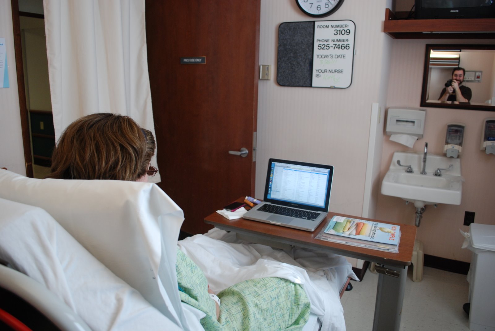 We settled into the bed, Pat put movies on the laptop, my contractions grew more intense. The doctor had said that if they grew so intense that I couldn’t speak, they’d prep me for delivery, regardless of the time.